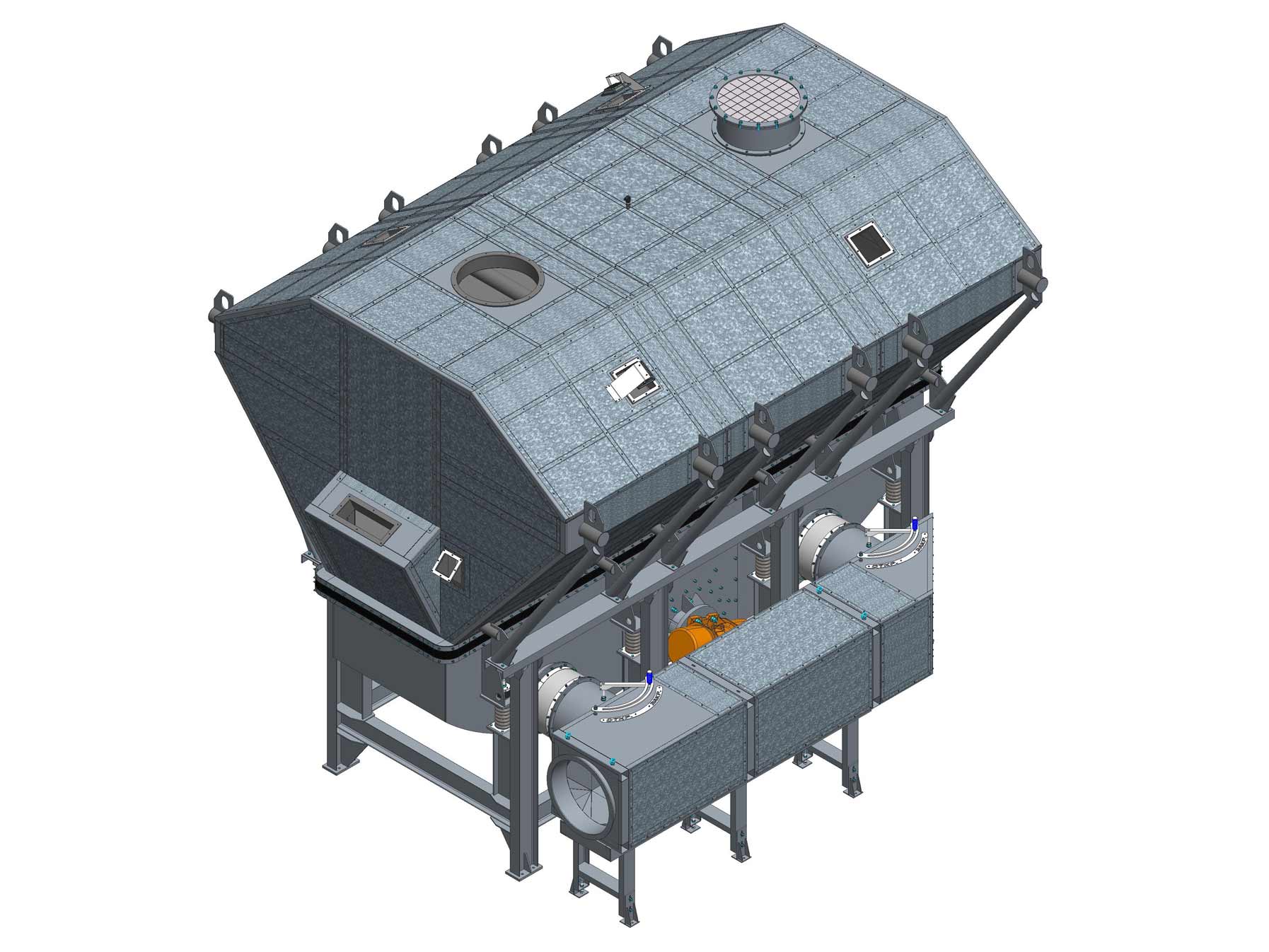 Агрегат CER 710 являє собою закриту сушильну установку з посиленою металоконструкцією та вібраційним принципом переміщення матеріалу, що забезпечує: